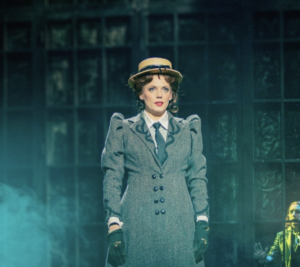 ic, as it is to be assumedthat the production is set in the 19th century. It was evidently included with the aim of passing on plot elements to us, otherwise difficult to achieve given the limited budget of the company. However, this device fell to pieces because different characters would stretch out on the floor and watch it, that is, they would be a second audience of it. I suggest that projection onto the back wall would have been a safer way to achieve this requirement. Defiantly, this TV was made into a hero component of the publicity. Oh dear. Another production problem was the encounter we have with the Governess in the train on the way to the ##. ###. A park bench takes the place of the seat in the train, and we see her hemmed in between two bulky persons. I was bewildered at this.